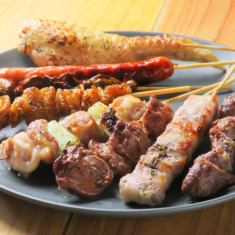 丁寧に串打ちした呑喰里の焼き鳥!!豚バラはもちろん赤海老の豚バラ巻きなど変わりダネも!お酒と一緒に◎