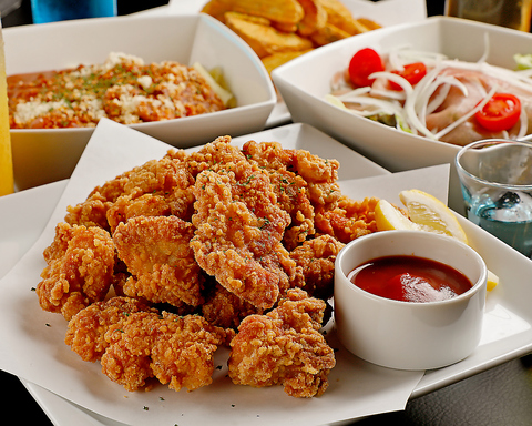 あつあつのフライドポテトはお酒との相性抜群!その他にも唐揚げやミックスナッツ、生ハムなどもご用意!食べ飲みながらダーツやカラオケをお楽しみいただけます♪