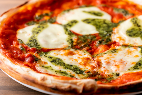店のピザは窯で焼いている本格派!生地は、ふんわりとして、もちもち♪当店1番人気の『マルゲリータ』を始め、7種類ございます!