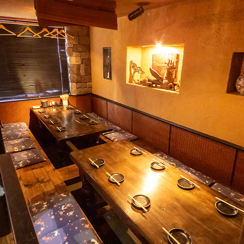 贅沢な座り心地で至福の時間を。すだれで仕切れる半個室もございますので、プライベートな時間をお過ごしいただけます。お客様同士の間隔も心配なし!少人数でのご利用から会社のミーティングなどいろんなシーンでご利用できます!宴会に最適な飲み放題付きコースも多数ご用意しており、極上のくつろぎをご提供いたします!