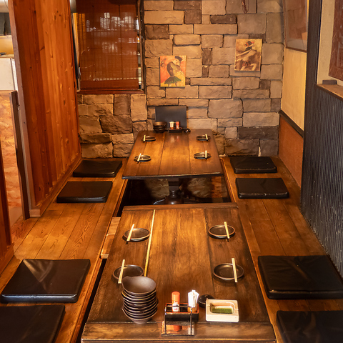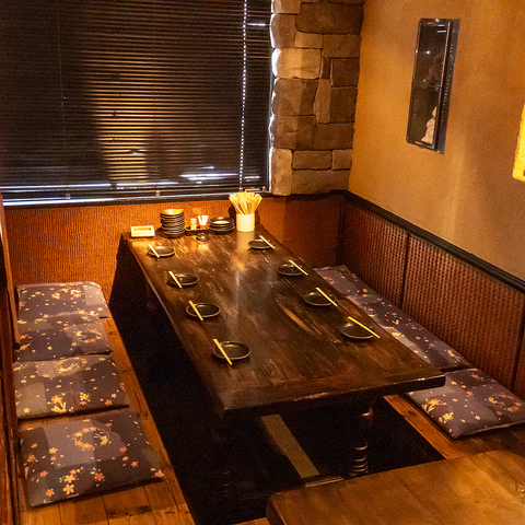 心地よくくつろげる掘りごたつ席。周りを気にせず楽しい時間をお過ごしいただけます。視線の気にならないリラックススペースで大切な日を過ごしたい日や、接待でのご利用などに適しております◎少人数からのご利用もお気軽にご相談下さい!人気のお席になりますので、早めのご予約を!!ご来店お待ちしております♪