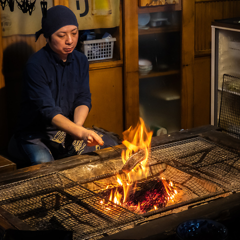 その日仕入れた旬の食材を幅広く取り扱ってます。大囲炉裏の炭火でじっくりと焼きあげるから、一味違う旨味が楽しめます。魚介はもちろん、旬の野菜やお肉も囲炉裏焼きで味わえる!!お客様に楽しんでいただくことを第一に考え、日々企業努力に励んでいます。会社宴会はもちろん、サークル飲み、女子会、男子会、合コン…色んな場面で使えます!