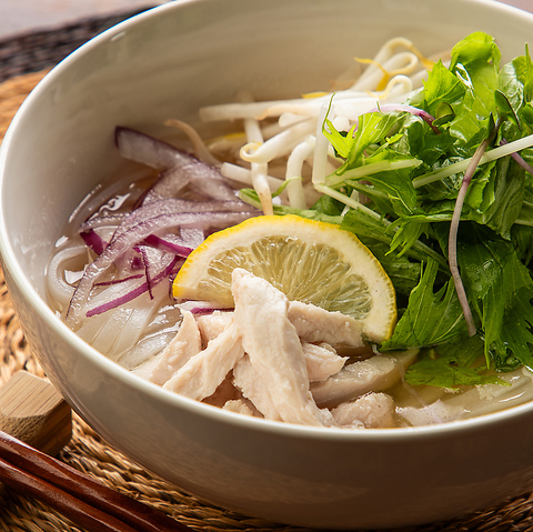 ヘルシーで野菜たっぷりのこだわりフォー!化学調味料を使用しないスープも自慢☆国産米の米麺を使用。