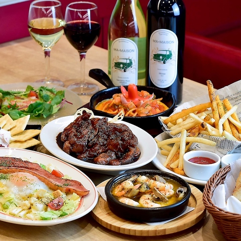 アンチョビバターで炒めた「焦がしバターのアンチョビキャベツ」や「生ハムプロシュート」など、ワインとの相性抜群のメニューを多数取り揃えております。飲んだ後の〆には「マ・メゾンデミカレーライス」や「濃厚クリーミーブラックパルミジャーノリゾット」をお楽しみください。
