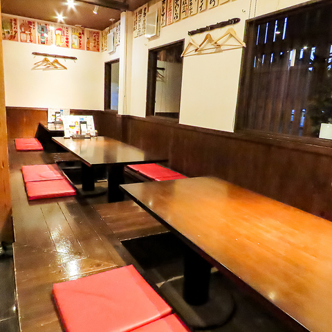 ≪テーブル席・掘りごたつ席≫テーブル席は、友人や家族との食事にぴったりな開放感が魅力。掘りごたつ席は、ゆったりとくつろげる空間で、足を伸ばしてリラックスしながら美味しい料理を楽しめます。どちらの席でも、旬の食材を使った絶品料理や豊富なドリンクメニューが揃っており、心温まるひとときをお約束します。
