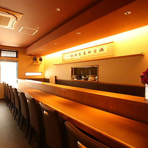 カウンター席や小型テーブル席は少人数にぴったりの仕様になっており、特別感のある落ち着いた雰囲気で食事を楽しめます。木目調のインテリアに柔らかな照明が映え、親しい方との距離を大切にできます☆静かな環境ながら臨場感ある空間で、職人技を眺めながら一皿ずつ味わえるのも魅力◎