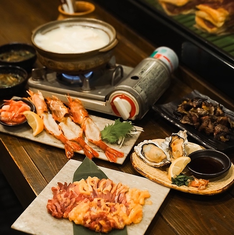 自慢の親鶏や温泉豆腐に加えて、大粒蒸し牡蠣や海老しゃぶといった海鮮お料理もご用意ございます!