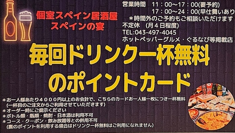 ★いつでもドリンク一杯無料券とポイントカードがセット★になった超お得なサービス始めました!!【ご利用条件あり】!なんとポイントを貯めて最大25%オフ!!気軽に通ってポイントをためちゃいましょう!(^^)当店ご利用の際にカードはお配りしております。皆様心よりお待ちしております!!(^^)!