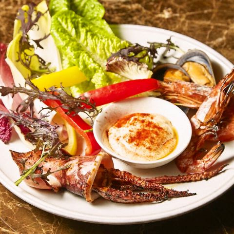 『BISTRO CRESTA』は欧州各国の逸品を集めたビストロ。料理を満喫するにはパーティーコースがオススメ!イチオシは「プレミアムコース」6980円(税込)。人気料理を全7品盛り込みました。炭火焼きの厳選肉3種はもちろん、「半焼成バケット付きの季節のアヒージョ」や「魚介のパエリア」など多彩に楽しめます。