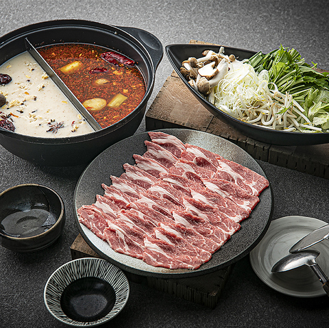 優しいマイルドな白濁のスープ。滋養強壮作用、疲労回復に役立つ多くの薬膳スパイスを配合しています。ラムはさっとしゃぶしゃぶで。お野菜もたっぷり摂れて、美容にも健康にも嬉しいお鍋です。