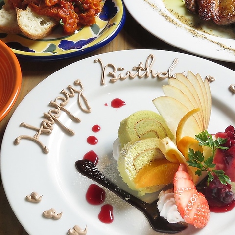 記念日サプライズとして、通常1500円のデザートプレートを無料でプレゼント!!プレートの文字はイタリアンらしくイタリア語でもお書きできます!スタッフ一同心をこめてお祝いいたします♪