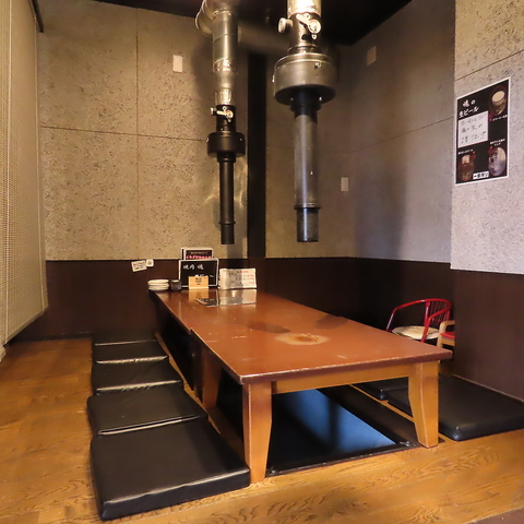 足を伸ばしてくつろげる掘りごたつタイプのお席です。お友達や同僚の方々とご一緒にどうぞ!団体様のご予約も承っております!全席ダクト完備してます。換気を常に行っております。