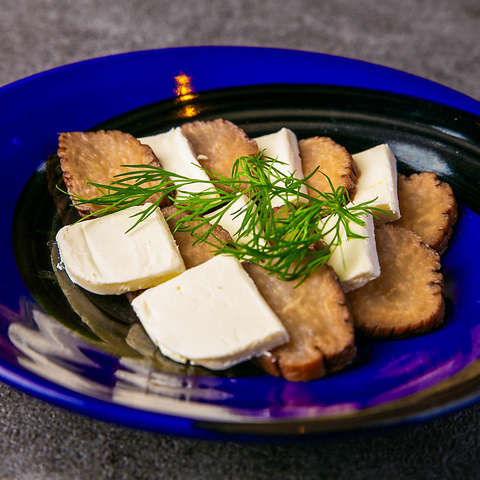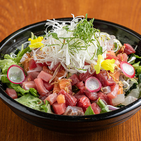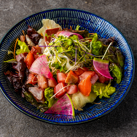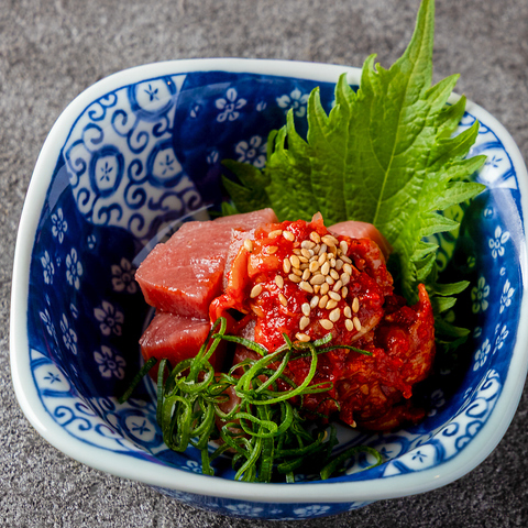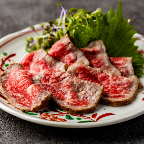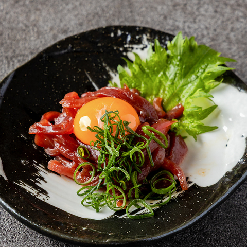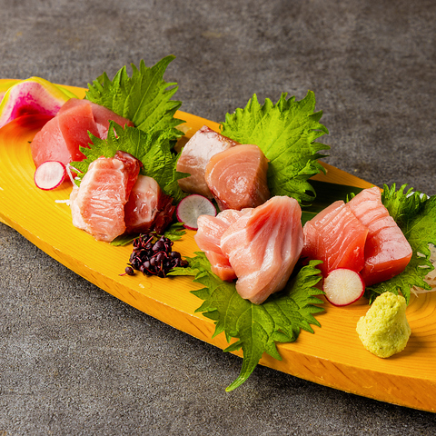 鮪の王様、本鮪(ほんまぐろ)の断面刺しを贅沢に使用。赤身から大トロまでの美しいグラデーションをそのままに、炭火で表面をかるく炙りました。香ばしい炭の香りが鮪の濃厚な旨みを引き立て、口の中でとろけるような脂と香りが絶妙なハーモニーを奏でます。