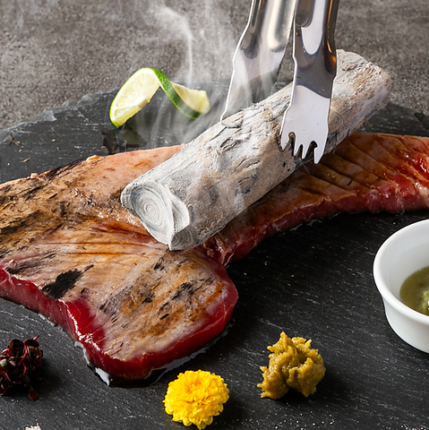 贅沢!本鮪の断面刺しを炭で炙ります!香り、とろける鮪を・・・