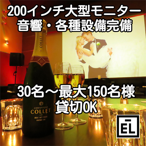 飲み放題付きでパーティー、宴会にも便利◎幹事様の事前下見、打ち合わせも大歓迎☆お気軽にお問い合わせください!★音響/映像設備貸し出し★200インチ巨大プロジェクター貸し出し無料★照明サポート有り(スポットライトなど照明での演出できます♪)★スタッフによるサプライズ演出お手伝い などぜひご相談ください♪