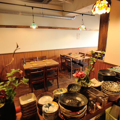 普段使いからカジュアルに楽しめる落ち着ける雰囲気のテーブル席♪人数に合わせてテーブルのレイアウト変更も可能です!デートやお食事、ランチ会、会社帰りなど様々なシーンにご利用いただけます♪