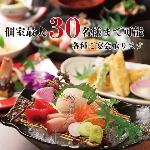 宴会・接待・顔合わせなどの季節のご宴会におすすめのコースは、各価格帯ごとにご用意しております。ごゆっくりとくつろげる個室席でお食事をお楽しみください。