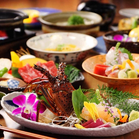 伊勢海老姿造盛・天婦羅盛・寿司3種等、贅沢食材を使用した全10品の極みコースは接待や顔合わせなどにも最適。掘りごたつ個室やテーブル個室、夜景の見せるお席などご要望に合わせてご用意させていただきます。