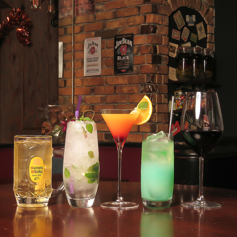 | Cocktail | ジントニック/ウォッカトニック/カシスソーダ/カシスオレンジ/カシスウーロン/テキーラサンライズ/チャイナブルー/ブルドッグ/カルーアミルク/カシスミルク/マリブミルク/マリブオレンジ/スクリュードライバー/キューバリブレ/ワインクーラー/スプリッツァー/スプモーニ |
