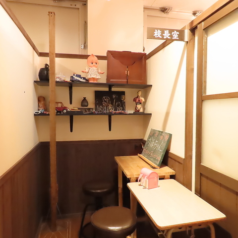 昭和の小学校を再現した店内。店内には、黒板にランドセル・校長室・職員室・音楽室・保健室など、懐かしい小学校そのものです。全席個室となっており2名様~40名様までご利用可能です。※営業中はお電話の繋がりにくい状況が続くことが多発しております。ご予約はネット予約にて承っております。