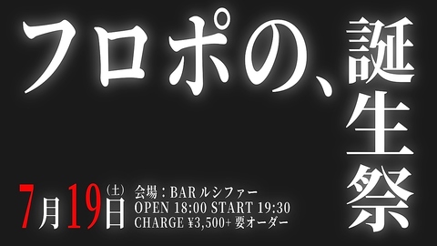 【イベント開催決定】7月19日土曜日にイベント「フロポの、誕生祭」を開催いたします。スタートは19時半からとなっております。美味しい料理やドリンクを味わいながら心地よい音楽を楽しむライブイベントへ是非お気軽にご来店ください。