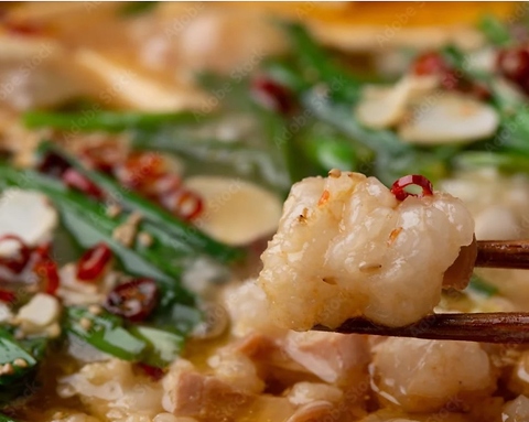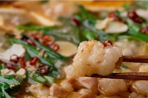 プリっぷりの国産厳選もつと秘伝のカレースープのスーパーコラボ。〆のチーズリゾットは絶品です。