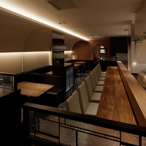 広々としたテーブル席にて、ごゆっくりとお寛ぎください。四季折々の食材を贅沢に使った揚げたての高級串カツを囲みながら、お仲間との食事やご家族との団らん、女子会にも最適な人気のお席です。
