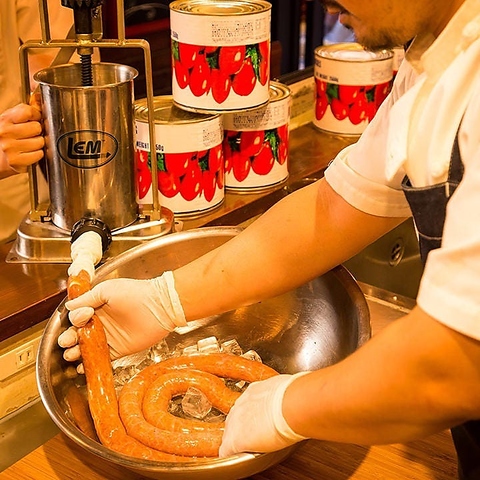全て店内で手作り!自家製ソーセージやフォアグラ100%の半熟テリーヌなど手間ひまかけた逸品が揃います。