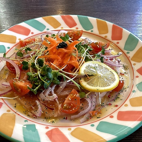 【マグロのカルパッチョ ~和風ソース~】ほかにも、温菜、冷菜、季節のおすすめなど豊富なメニューを取り揃えております。姉妹店が洗足にございますのでよろしければ洗足店でのご来店もお待ちしております♪