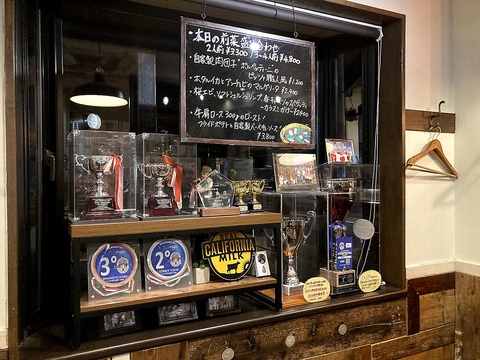 【間近に歴代のトロフィーが】一階席の出窓には、これまで受賞してきた歴代のトロフィーが!こんなに間近に見られる機会はなかなかない!!