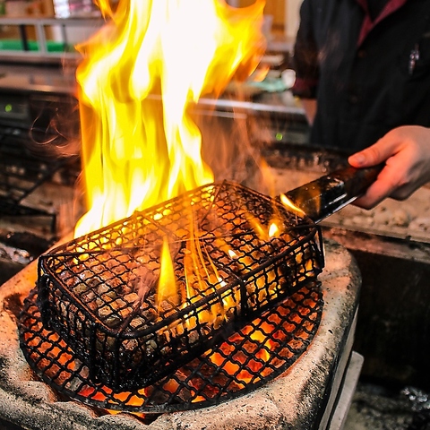 《備長炭を使用した本格炭火焼》備長炭でじっくり焼き上げた、香ばしい焼き鳥が自慢です。ぜひご賞味ください。