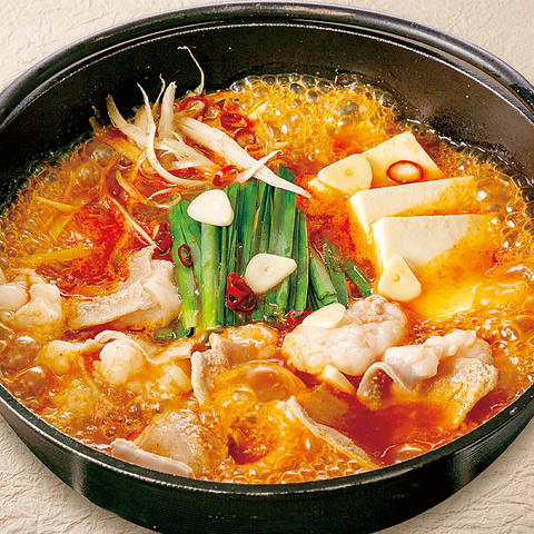 絶品国産牛のもつと、コチュジャンがベースの旨辛鍋。【1人前】 1,353円 / 【2人前】 2,706円 / 追いだし 165円