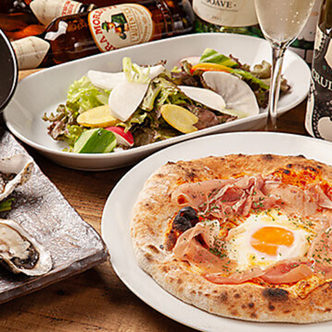 種類豊富なソースで楽しむ生牡蠣が名物!タバスコ、トリュフオイル、ワインビネガー、ポン酢など種類豊富なソースで楽しめます。厳選ワイン・スパークリングとの相性も◎その他、牡蠣チーズ焼きもご用意しております!牡蠣好きにはたまらない逸品です★料理メニューはパスタ・ピザなど、多数ご用意しております!