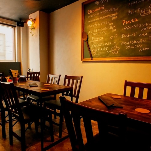 暖かみのある照明で落ち着いた雰囲気の店内は、普段使いのお食事やカジュアルなデートから女子会、少人数でのお集りなど各種ご宴会にも是非ご利用ください!!貸切もご予約可能ですので、ご希望の方は当店までお問い合わせください。ベビーカー入店可能です。家族連れのお食事も大歓迎♪