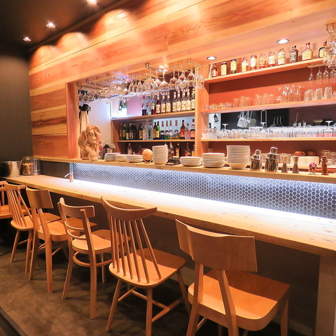 お一人様も大歓迎♪気軽に使えるカウンター席☆本格イタリアンを始め、アラカルトメニューやドリンクも豊富にご用意しておりますので、一人でのんびりお食事もOK、仕事帰りにちょっと一杯もOK◎それぞれのお一人時間をお楽しみ下さい☆