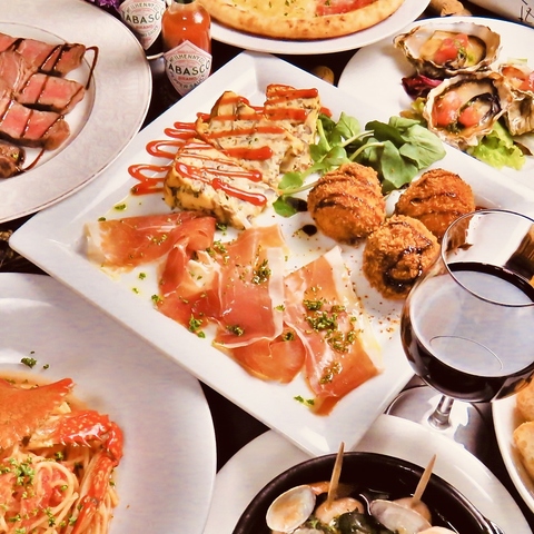 アヒージョ・ピザ・パスタ・肉料理等特製メニュー10品×2時間飲放☆会社宴会・仲間内のパーティにぴったり