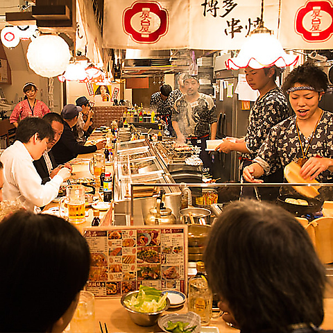 人情味と活気あふれるおもてなし♪丁寧かつ元気いっぱいの接客でお出迎え。本場博多の屋台の雰囲気と迫力ある調理場を感じながら、お料理やお酒をゆっくりお楽しみください。牛もつ鍋・餃子・串焼きなど博多名物もたっぷり堪能できます。賑やかな店内は、会社宴会はもちろん、女子会や誕生日会など、さまざまなシーンで気軽に楽しめます♪