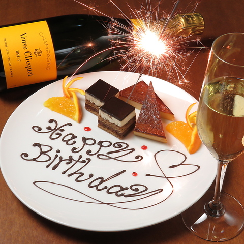 ◆サプライズプレート1000円(税込)◆誕生日や送別会など、ご要望に応じてメッセージをお入れします♪