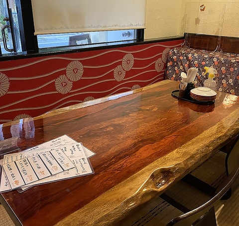 テーブル席のほか小上がりのお座敷席、そしてお一人様でのご利用にも便利なカウンター席をご用意しています。お客様との繋がりを大切に。地元の方はもちろん、観光でいらっしゃった方も、様々なお客様の憩いの場になれたらと思っております。