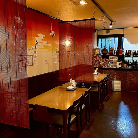 リラックスしてお食事を楽しんでいただける、落ち着いた和風テイストの内装。くつろぎの空間で美味しい料理と楽しい時間をお過ごしください。