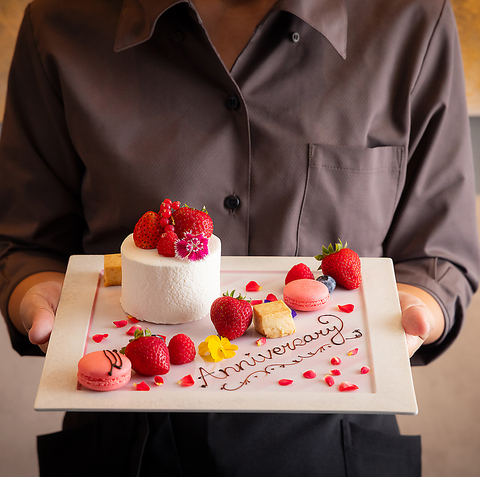 メッセージ入りアニバーサリープレート(一輪花付)@3,000お食事開始60分を目途に提供いたします。