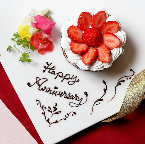 ケーキやメッセージプレートもお付けした、お祝いにぴったりのアニバーサリーコースもご用意しております。