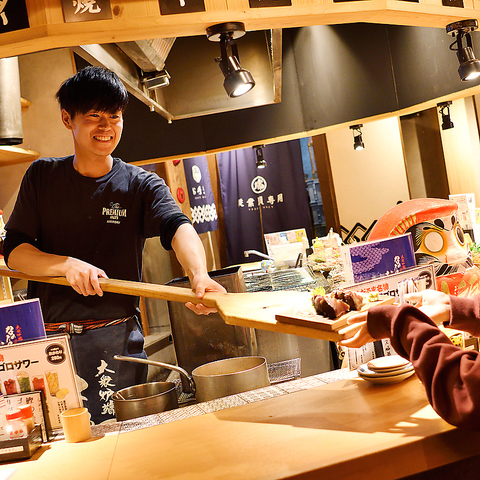 熟練の技で火加減を見極めながら、目の前で焼きあげてアツアツをすぐご提供♪旬の海鮮・野菜・お肉を店長がひとつひとつ丁寧に焼き上げます。炙られて素材の旨味が引き出された料理の数々をご堪能ください!