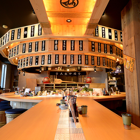 開放感あふれるこだわりの空間で、大衆炉端の魅力をじっくり満喫!活気ある店内では、目の前で焼き上がる臨場感と櫂で提供される演出が楽しめる劇場型カウンターが人気です。見て楽しく、食べて美味しい時間を演出♪デートからプライベート宴会まで幅広く利用でき、賑わいの中でも心地よく過ごせます◎