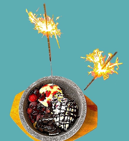 お祝いのサプライズ演出には 特製アイスに花火をつけてプレゼントいたします。詳細、段取りはスタッフまで、お声がけください。