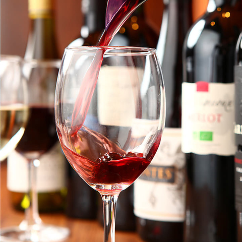 当店ソムリエが厳選して仕入れたこだわりのワインは、約30種類を取り揃えております!1本2500円~と手に取りやすくお気軽にお楽しみ頂けます☆飲み放題付きのコースでは、ボトルワインも楽しめます♪当店自慢のお料理と合わせてご一緒にどうぞ♪
