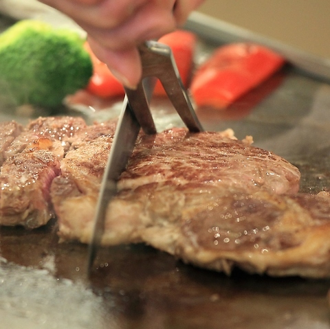 大好評“イチボ肉”を“牛肉の鉄板焼き”でご用意。ライブキッチンで調理。出来立てをお楽しみいただけます