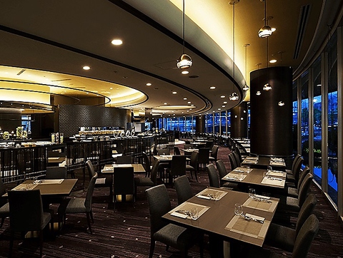 サラダや温製料理、デザートやパンなどすべての料理やデザートをビュッフェスタイルで提供いたします。目の前で調理を行うライブキッチンもあり、ご利用いただく時間ごとに異なるメニューをご用意しております。
