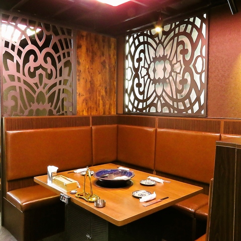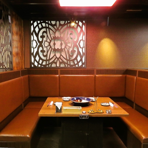 半個室は柔らかな照明と赤く色鮮やかな内装が特徴的です。落ち着いた雰囲気でお食事が楽しめます♪ランチメニューのコスパ抜群です♪ソファーなので食べ放題や飲み放題などゆったりご利用したい時やお子様連れのお客様にもお勧めです!!