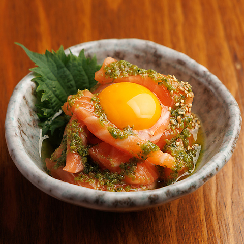 新鮮なサーモンに特製の塩だれをあわせました。はじめやに来たらまずはこちらから頼むのをお勧めします!